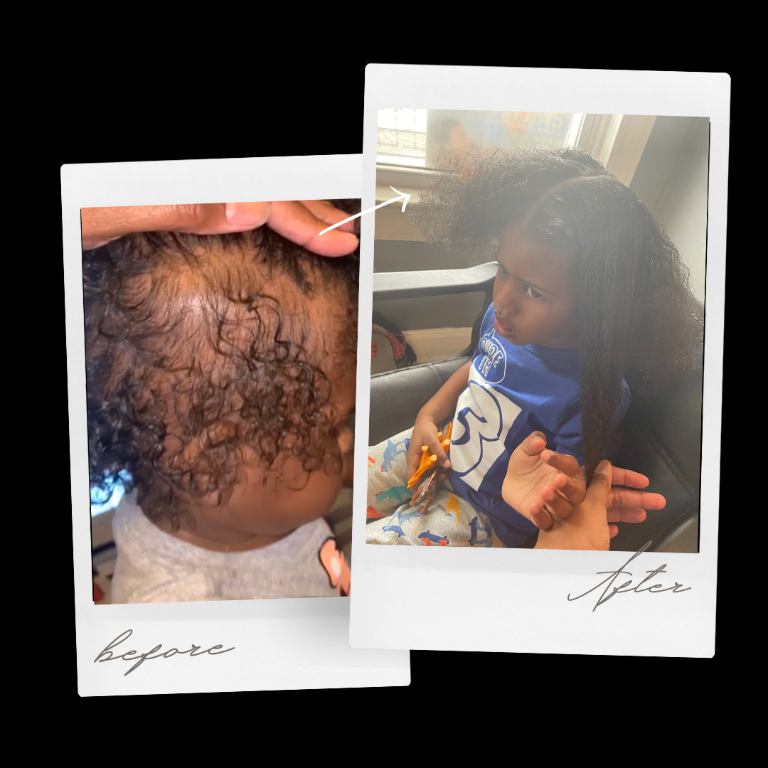 "For me having my second child was a horrific experience, all my hair fell out. There were bald patches, I had to do something. So, I started giving my hair some love and applying this recipe of oil that stimulated my scalp. So thankful i'm here with edges!